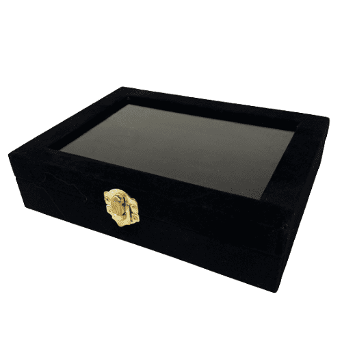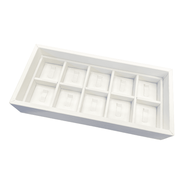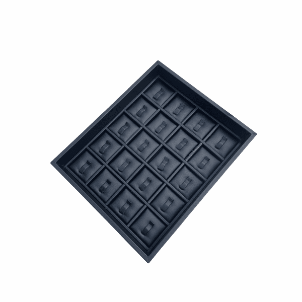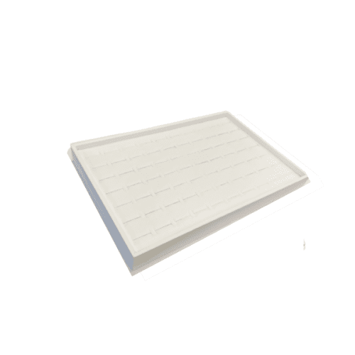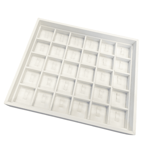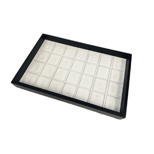 מגש 28 טבעות סקאי לבן עם עץ שחור