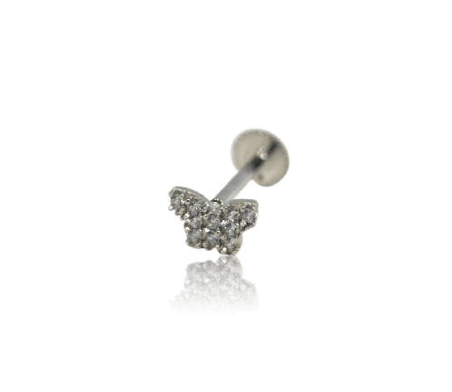 פרפר משובץ זהב לבן 14K