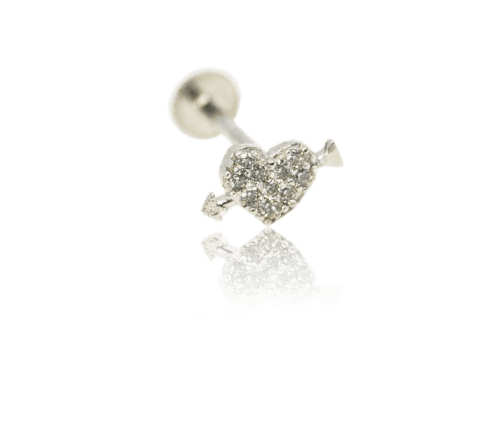 לב משובץ זהב לבן 14K
