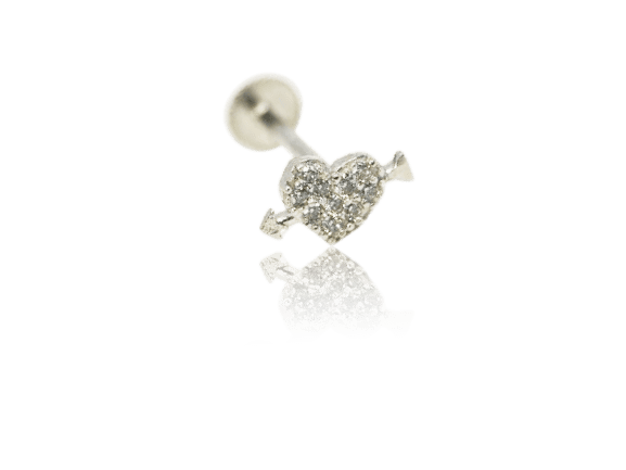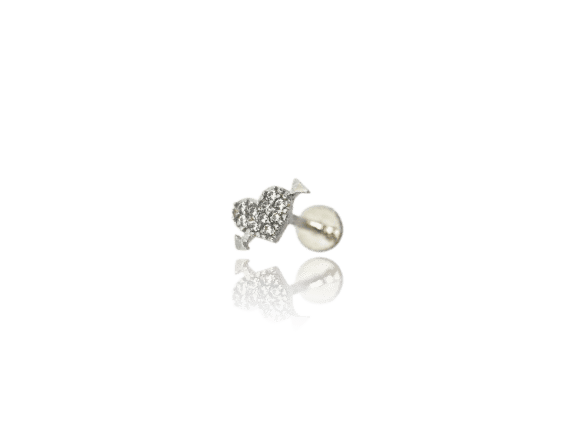 לב משובץ זהב לבן 14K