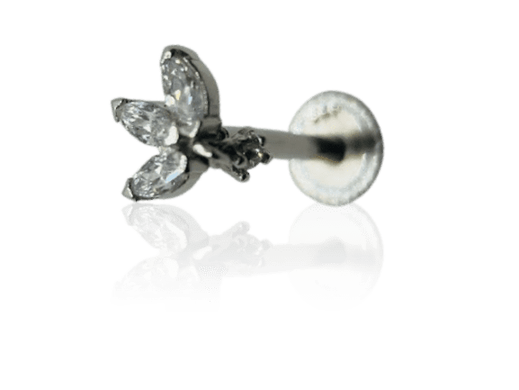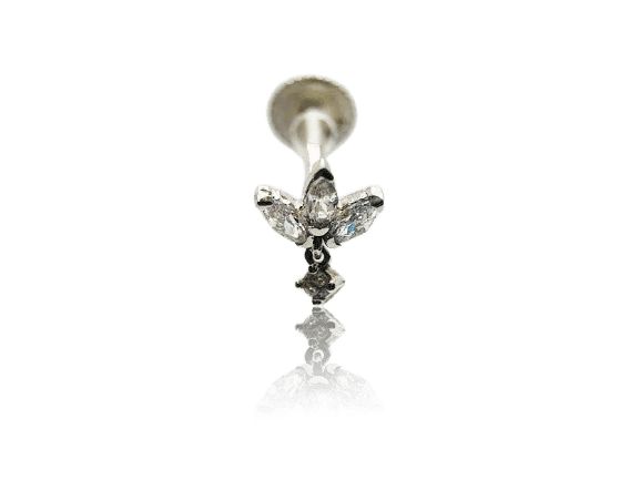 עגיל לוטוס משובץ זהב לבן 14K