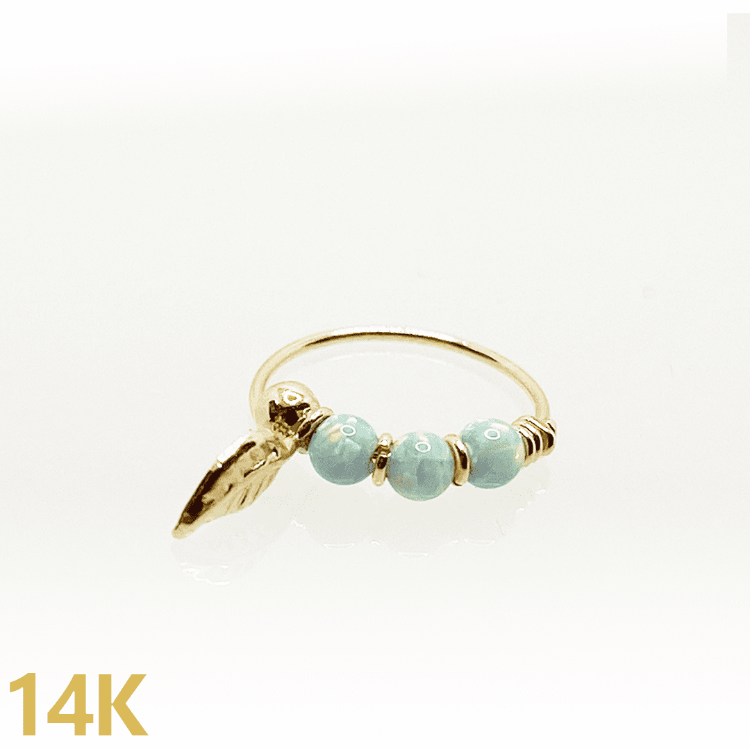 פירסינג אופל ונוצה 8 מ"מ- ירוק בהיר זהב צהוב