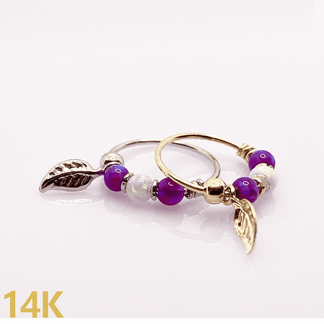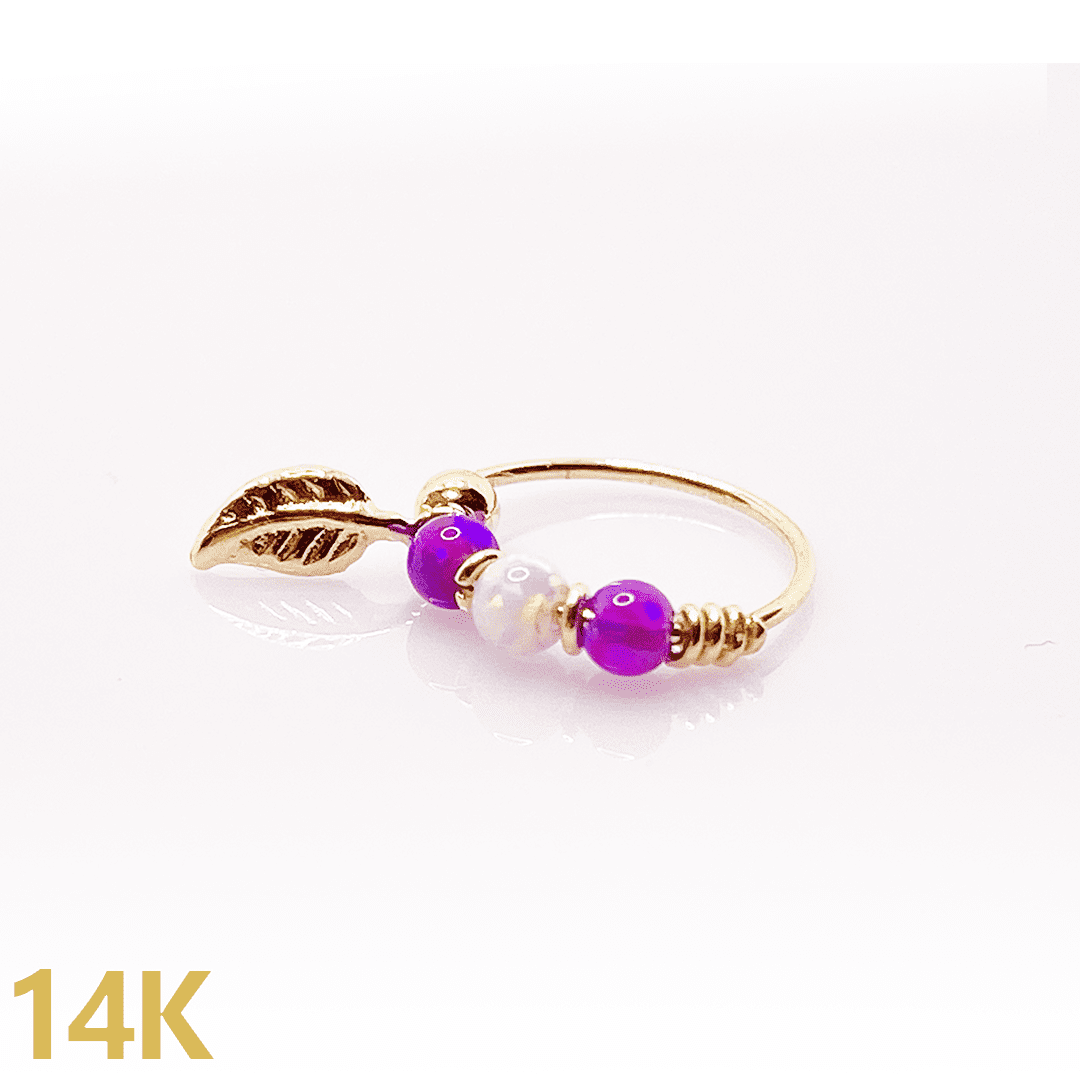 פירסינג אופל ונוצה 8 מ"מ- סגול זהב צהוב